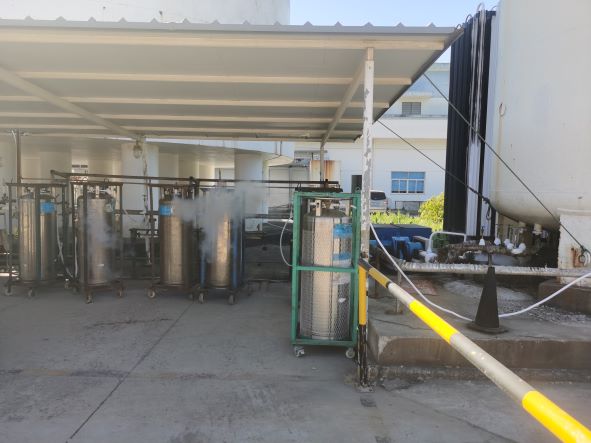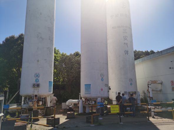 舟山億洋氣體有限公司(以下簡稱“舟山億洋”)成立于200311月,主要從事工業(yè)氣體充裝、儲存經(jīng)營,廠區(qū)設(shè)有氧氣、氮氣、氬氣、二氧化碳儲存及充裝設(shè)施。于202076日取得舟山市定海區(qū)應(yīng)急管理局頒發(fā)的《危險化學品經(jīng)營許可證》,編號:定應(yīng)急危經(jīng)字[2020]0019。許可范圍:*儲罐區(qū):氧[液化的]50立方米儲罐1個)、氮[液化的]20立方米儲罐1個)、氬[液化的]20立方米儲罐1個)、二氧化碳[液化的]50立方米儲罐1個、30立方米儲罐1個),充裝間:氧[壓縮的]1.2t、氮[壓縮的]0.27t、氬[壓縮的]0.5t、二氧化碳[液化的]1t*年充裝:氧[壓縮的]28萬瓶、氮[壓縮的]5萬瓶、氬[壓縮的]1.5萬瓶、二氧化碳[液化的]2萬瓶。有效期至202376日。