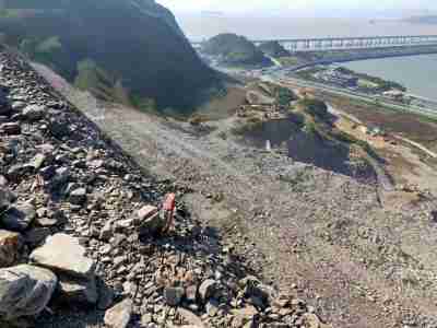玉環(huán)市蘆浦鎮(zhèn)石子岙廢棄礦山因過(guò)去石料開(kāi)采后未及時(shí)生態(tài)修復(fù),現(xiàn)狀基巖裸露,山體大面積破損。坡面存在多處小規(guī)模崩塌,西側(cè)邊坡頂部局部區(qū)域已出現(xiàn)拉張裂縫,邊坡存在變形跡象,有山體垮落、威脅周圍生產(chǎn)生活設(shè)施的可能,存在較大的安全隱患。