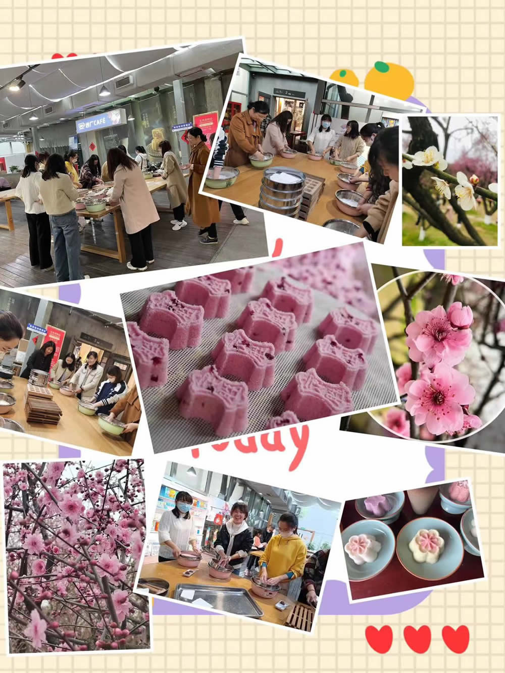 重頭戲在手工藝活態(tài)館大家親手制作了江浙一帶的特色糕點(diǎn)---定勝糕,寓意吉祥美好,意表吃過(guò)它凡事步步高。在這樣的特別日子里,泰達(dá)人祝公司和家人都必勝。吃完定勝糕我們賞超山“唐”、“宋”梅,游十里梅花香雪海,沉浸式體驗(yàn)宋韻文化,偶有飄過(guò)幾滴春雨,春風(fēng)化雨潤(rùn)紅花,更有一番風(fēng)味。